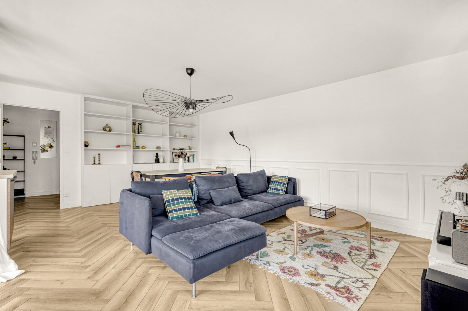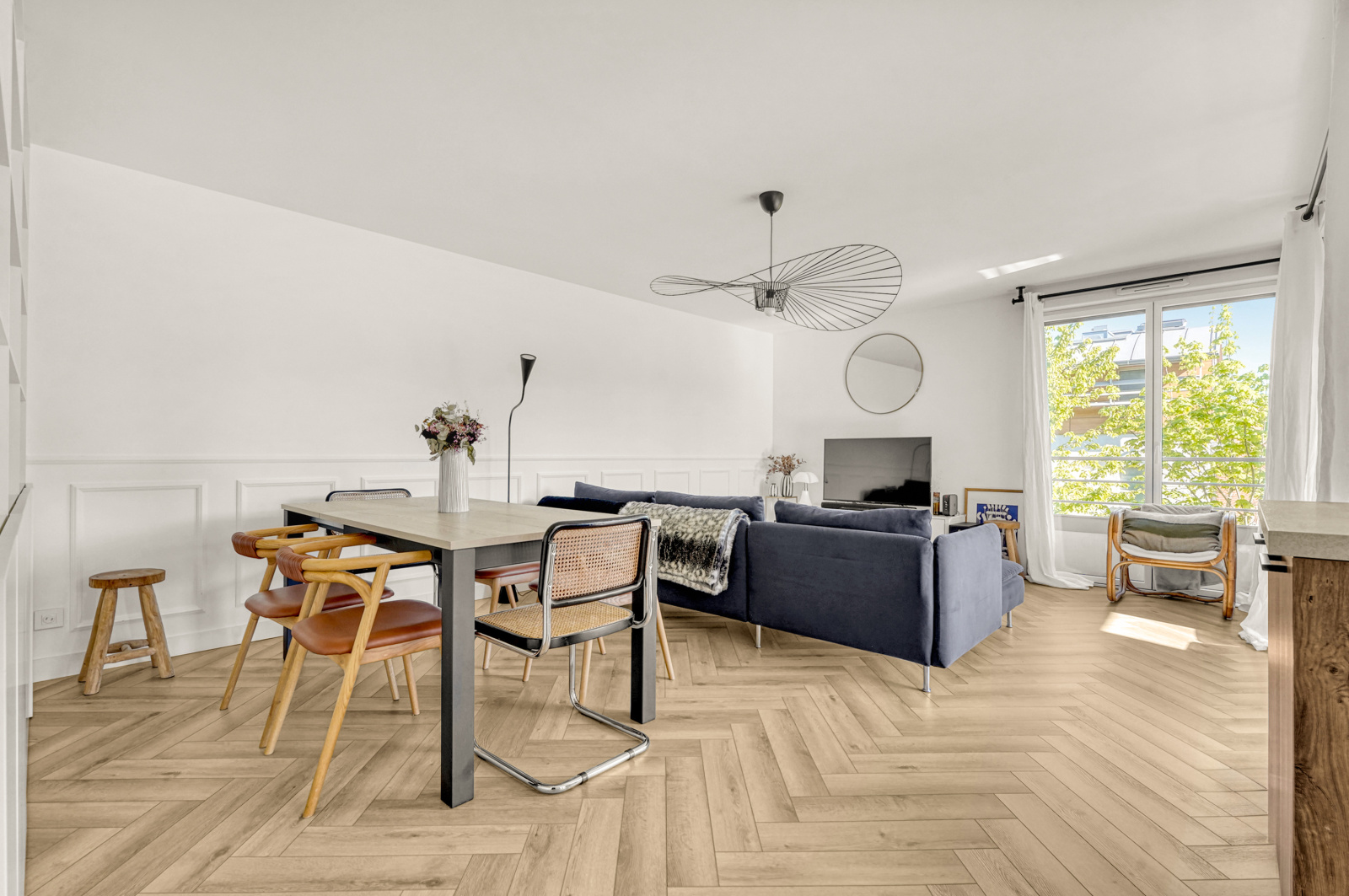 Belle pièce de vie LUMINEUSE de 37m² avec son parquet en point de hongrie
