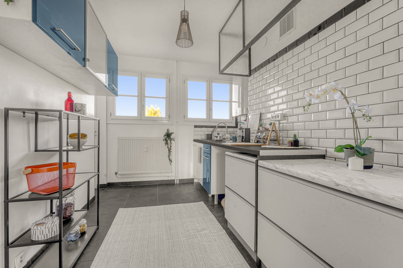 Cuisine aménagée à équipée séparée, avec accès arrière cuisine en plus de la superficie de l'appartement,