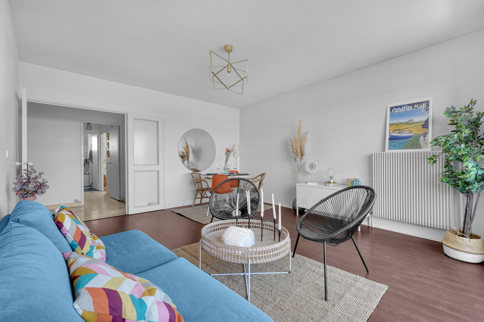 Au 6ème étage d'une résidence sécurisée avec ASCENSEUR, T3 d'environ 74m², TRIPLE EXPOSITION Entrée, salon avec accès BALCON, sans vis à vis, vue CANAL du MIDI. Cuisiné séparée et équipée, rangements, 2 chambres, salle de bain, wc séparés.