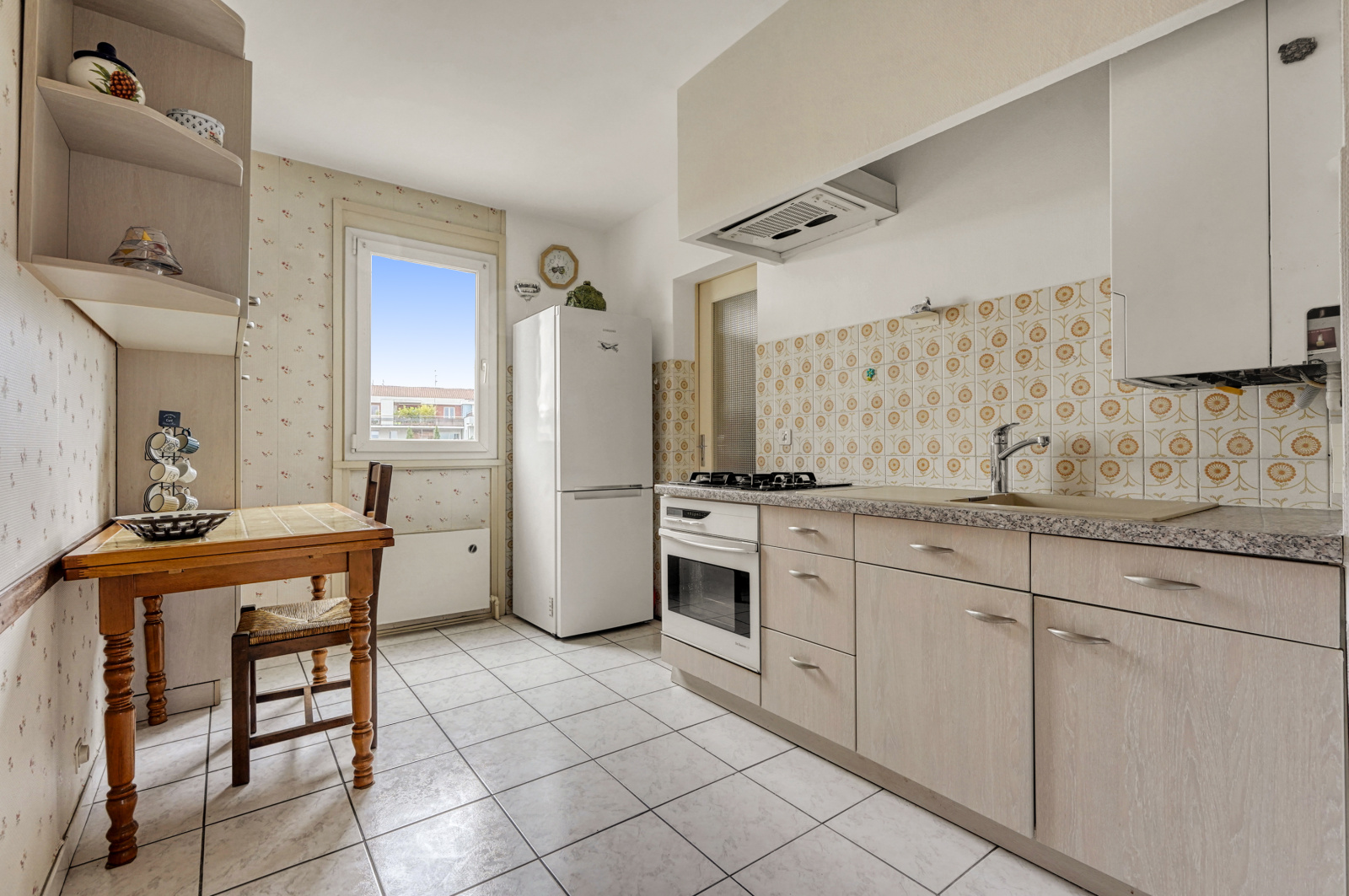 Cuisine aménagée et équipée avec coin cellier.