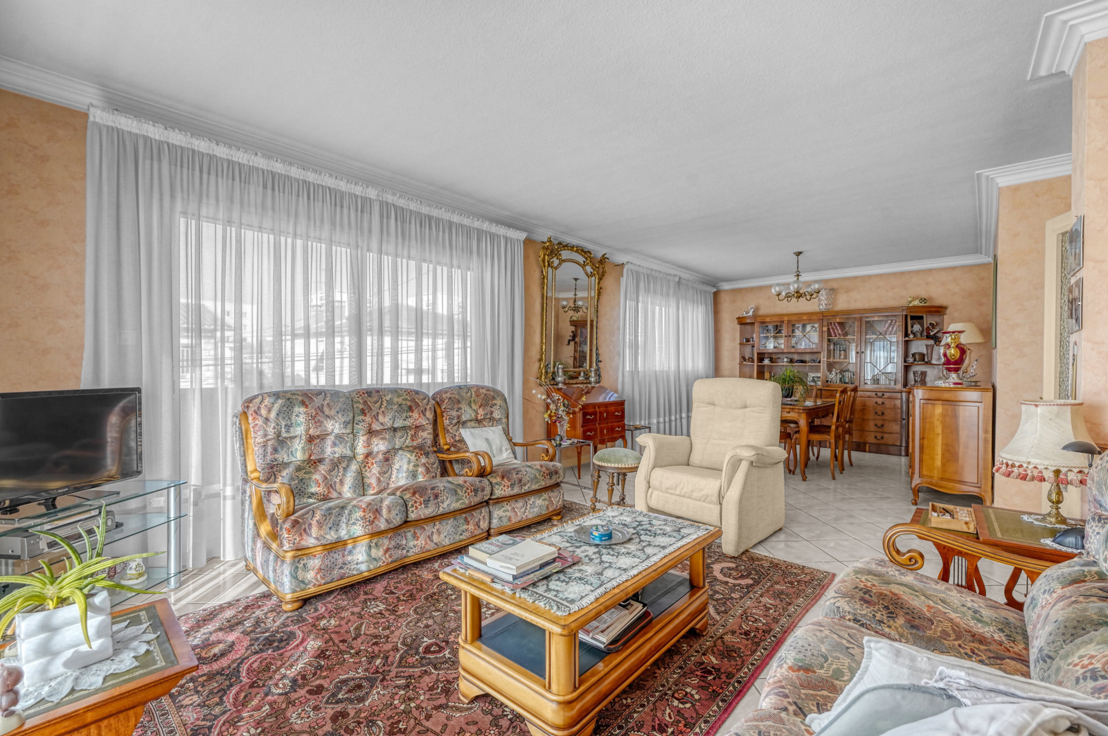 A l’étage : T4 , double salon séjour, cuisine indépendante, salle d’eau, 3 chambres, 1 terrasse expo Sud