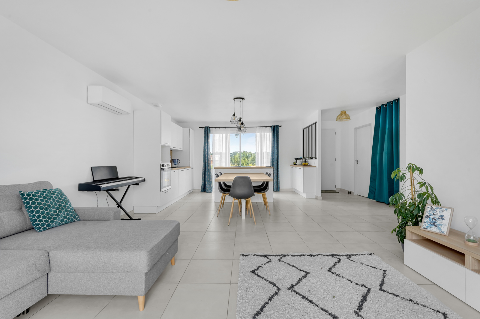 TRAVERSANTE avec une pièce de vie de plus de 42m², cuisine ouverte entièrement équipée, ilot central,