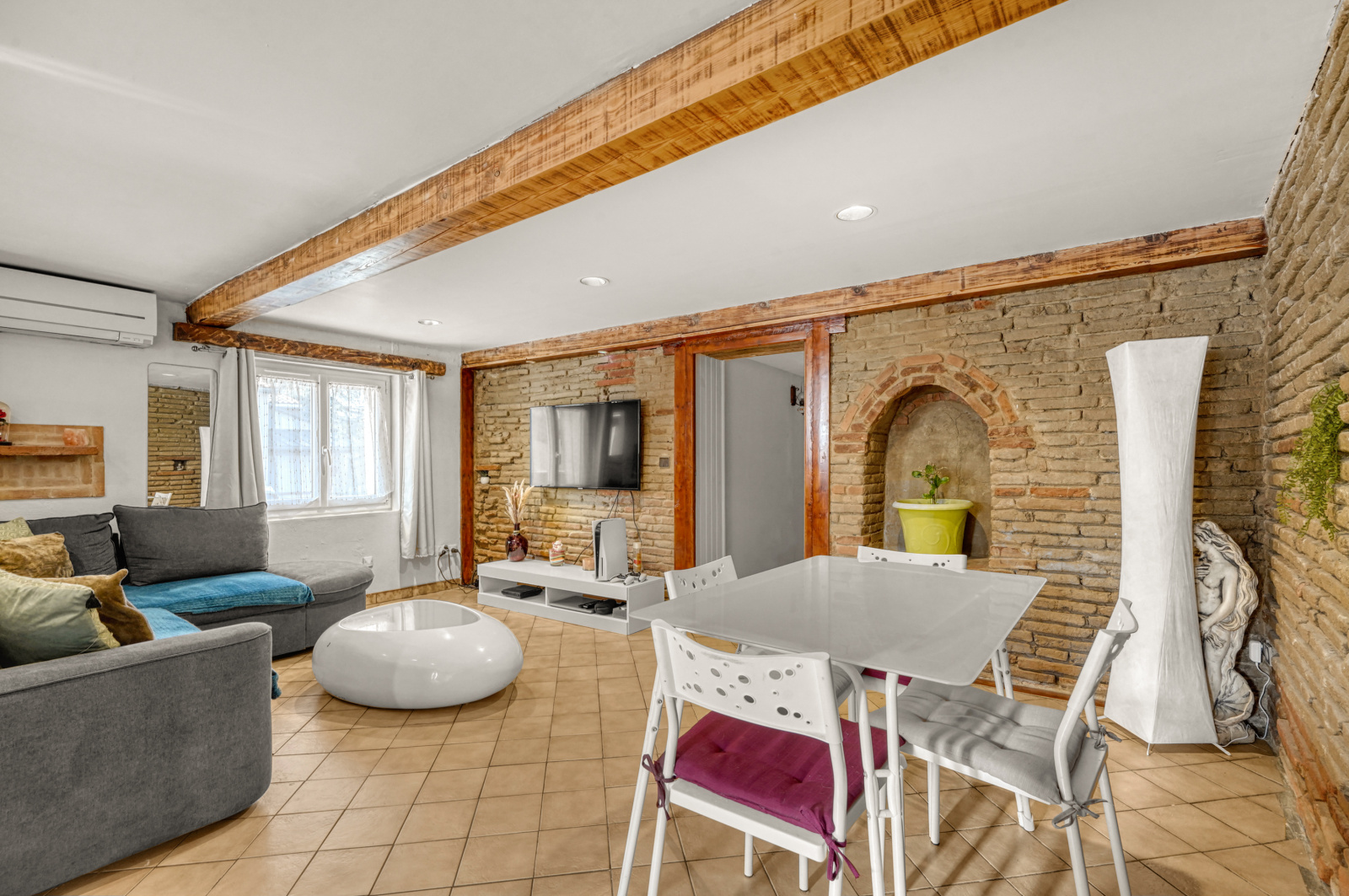 Ce qu'on aime : Charme, Briques Toulousaines, Poutres Apparentes, Deux points d'eau, Climations réversible.