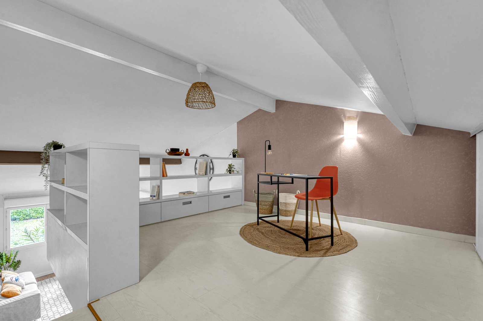 Du salon, vous aurez accès à la MEZZANINE d'environ 16m² au sol.