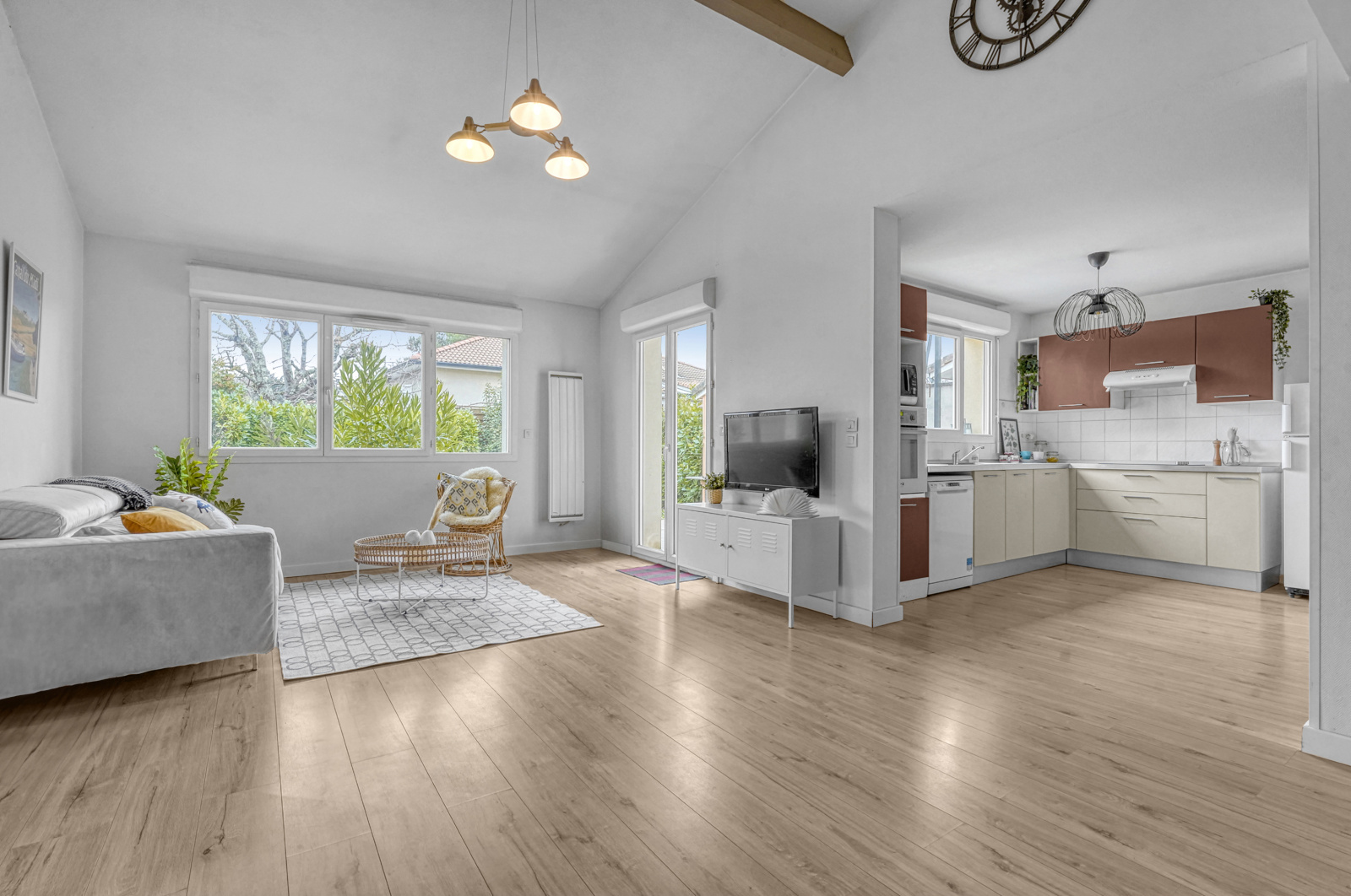 SPACIEUX salon, séjour avec cuisine ouverte et accès sur la TERRASSE et le JARDIN exposé SUD EST d'environ 140m², cellier,